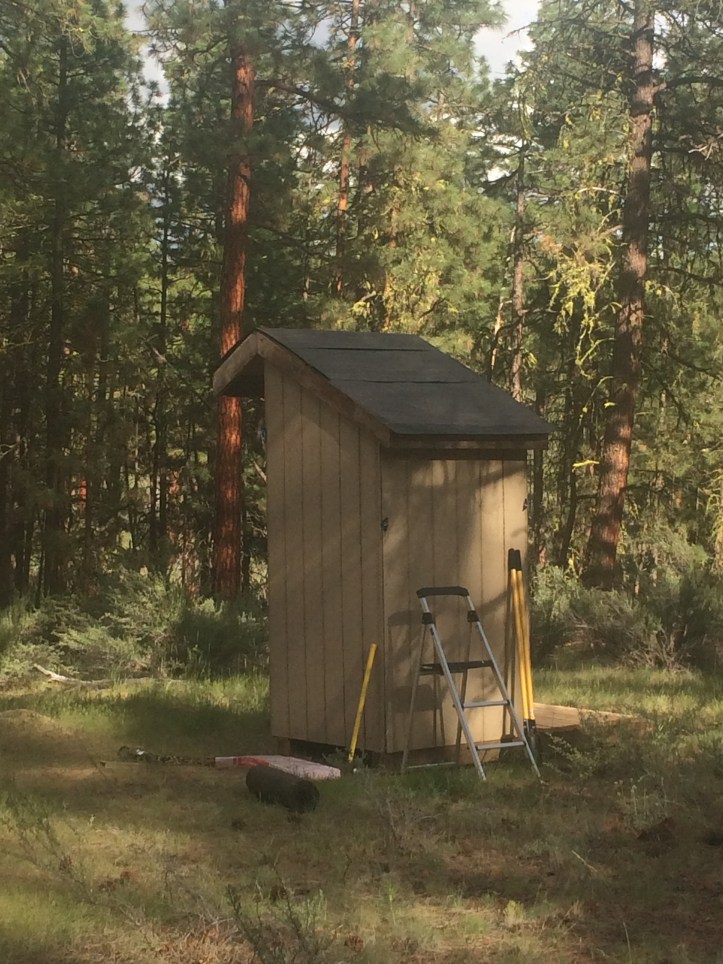 It rained that night. We waited an hour or so before checking the outhouse… and guess what?! It was bone dry!! We haven’t even put up the shingles yet, and already we’ve solved the rainy outhouse problem.