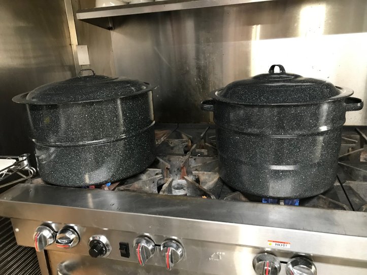 You can do two batches alternating (by the time I’ve filled one, the next one is usually ready to go) or you can have one for sterilizing jars and the other for canning the filled jars.