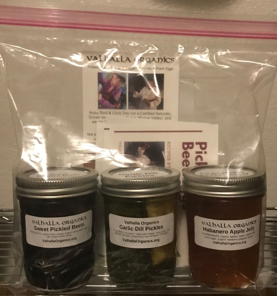 We are offering free no-contact local delivery (along the I-5 corridor from Ashland to Central Point). We deliver every two weeks, to ensure that we are maintaining a two-week quarantine between deliveries. Ruby wears gloves over clean hands to handle our products and packaging; she wears and mask and gloves for deliveries. Your goodies will arrive in a sealed plastic bag, so you can be confident that your food is safe.